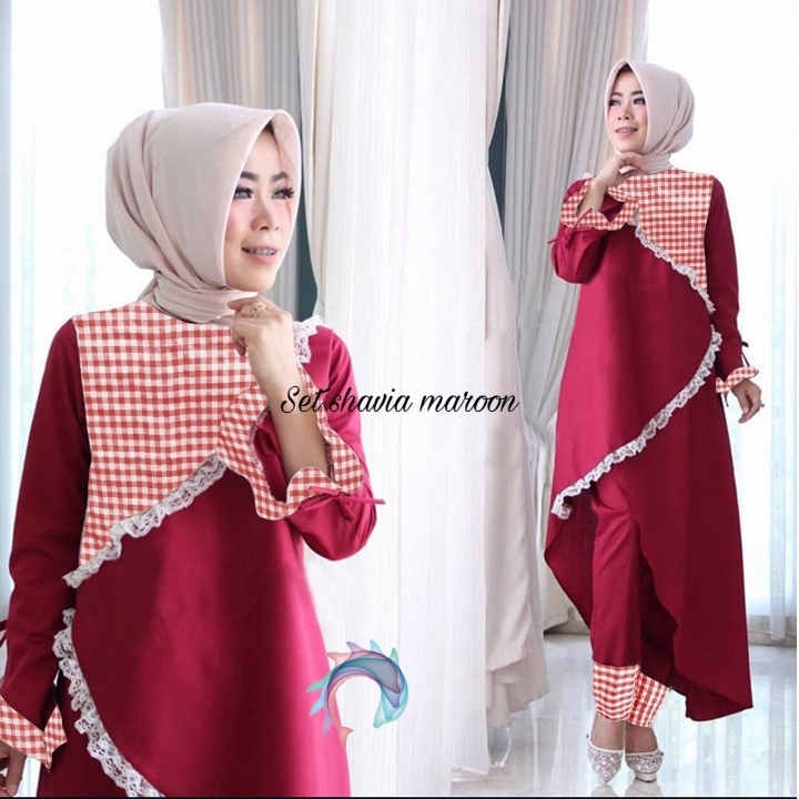 Bahan balotely mix katun kotak Tunic LD100cm Pjg130cm + Pant Pinggang Karet Pjg95cm