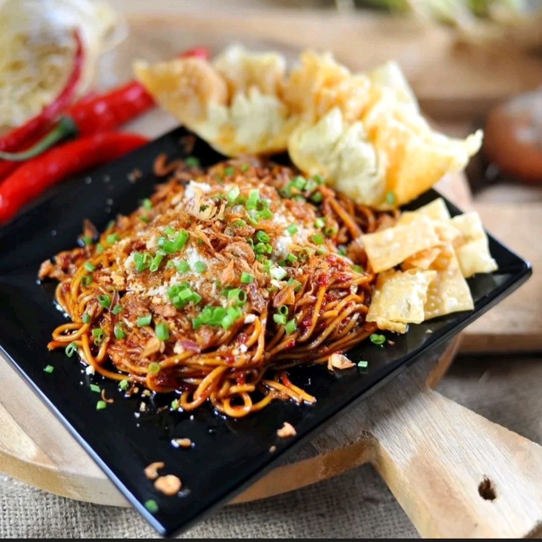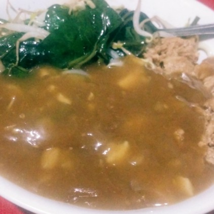 Mie ayam dgn kangkung+tauge dan disiram dgn bumbu rahasia yang manis dan lezat..rasakan sensasi makan mie ayam kangtau Zhi produk bang qomar