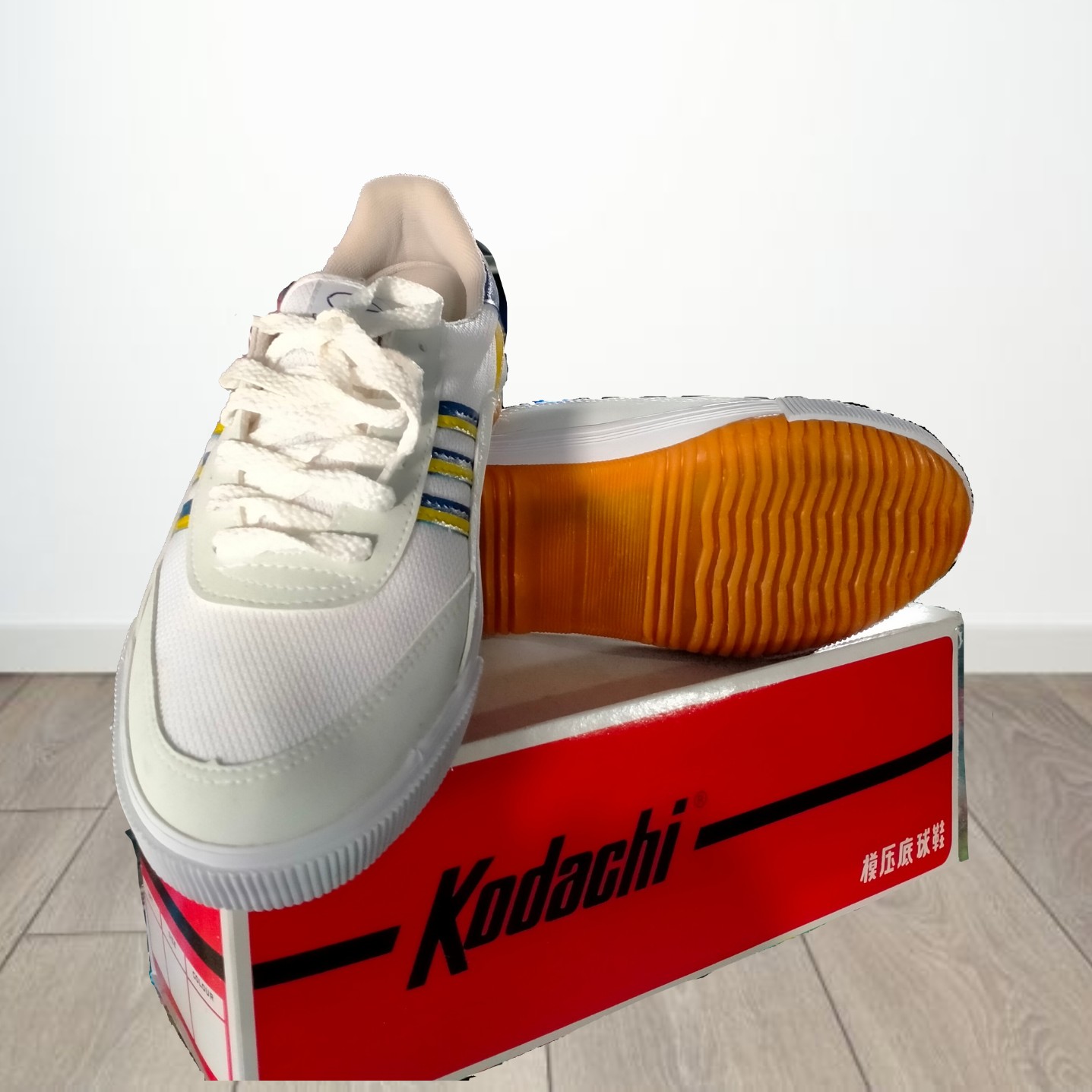 Merek : Kodachi Warna : Putih Kombinasi Kuning Biru Bahan : Kain Bawah Kulit Bertali Ukuran : 39, 40(2), 42