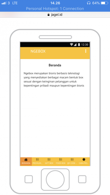 Ngebox merupakan bisnis berbasis teknologi yang menyediakan berbagai macam bentuk box sesuai dengan keinginan pelanggan untuk kepentingan pribadi maupun kepentingan bisnis.