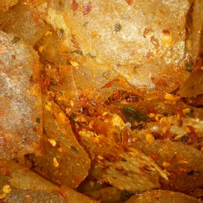 Kripik kaca super pedes ada 2 variant rasa.cabe rawit merah.cabe rawit ijo.rumput laut