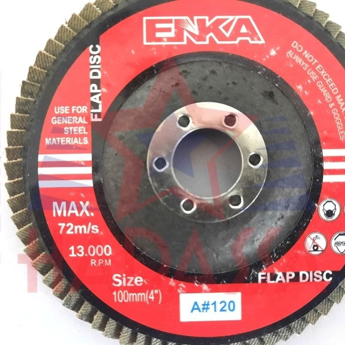 Flap Disc 4" Enka GRT 120 digunakan untuk mengikis permukaan, baik pada permukaan logam maupun pada permukaan kayu.