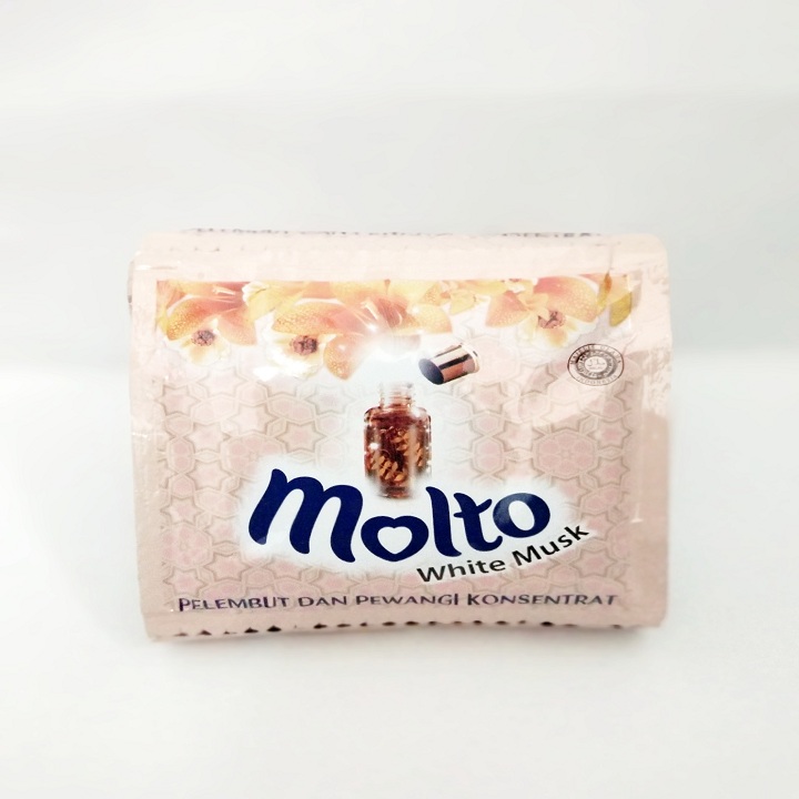 Dengan wewangian seperti White Musk, yang mengandung aroma kayu, musky, serta wangi bunga mawar dan melati, Molto memberikan keharuman sepanjang hari yang membantu Anda tetap tenang dan positif sepanjang hari.
